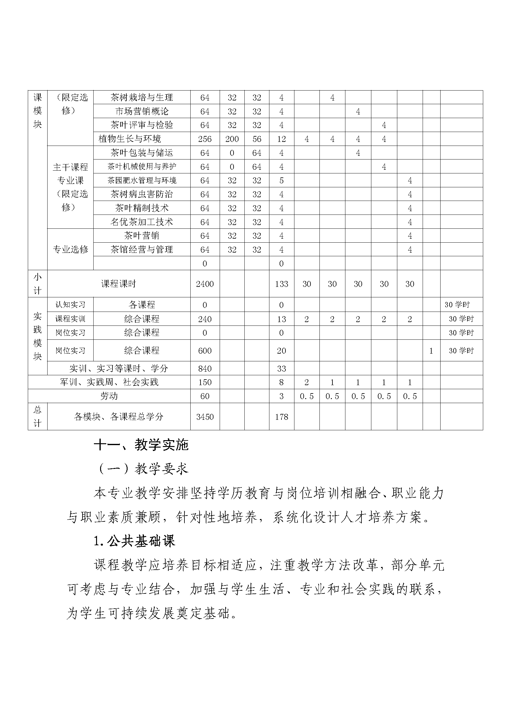 三明市农业学校茶叶生产与加工专业人才培养方案(2023)