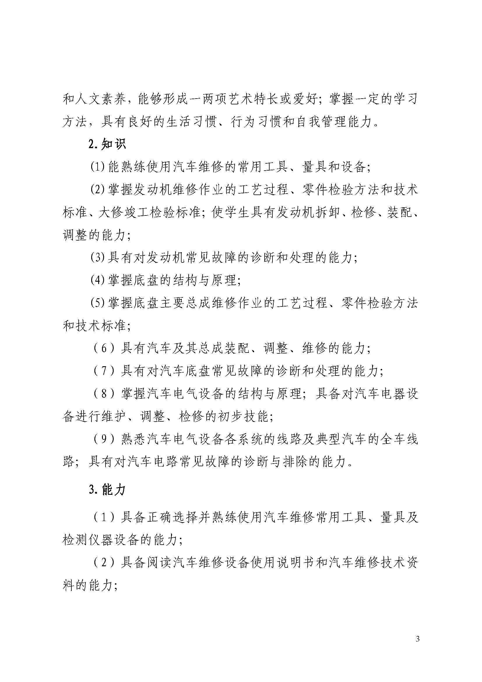 三明市农业学校汽车运用与维修专业人才培养方案(2023)