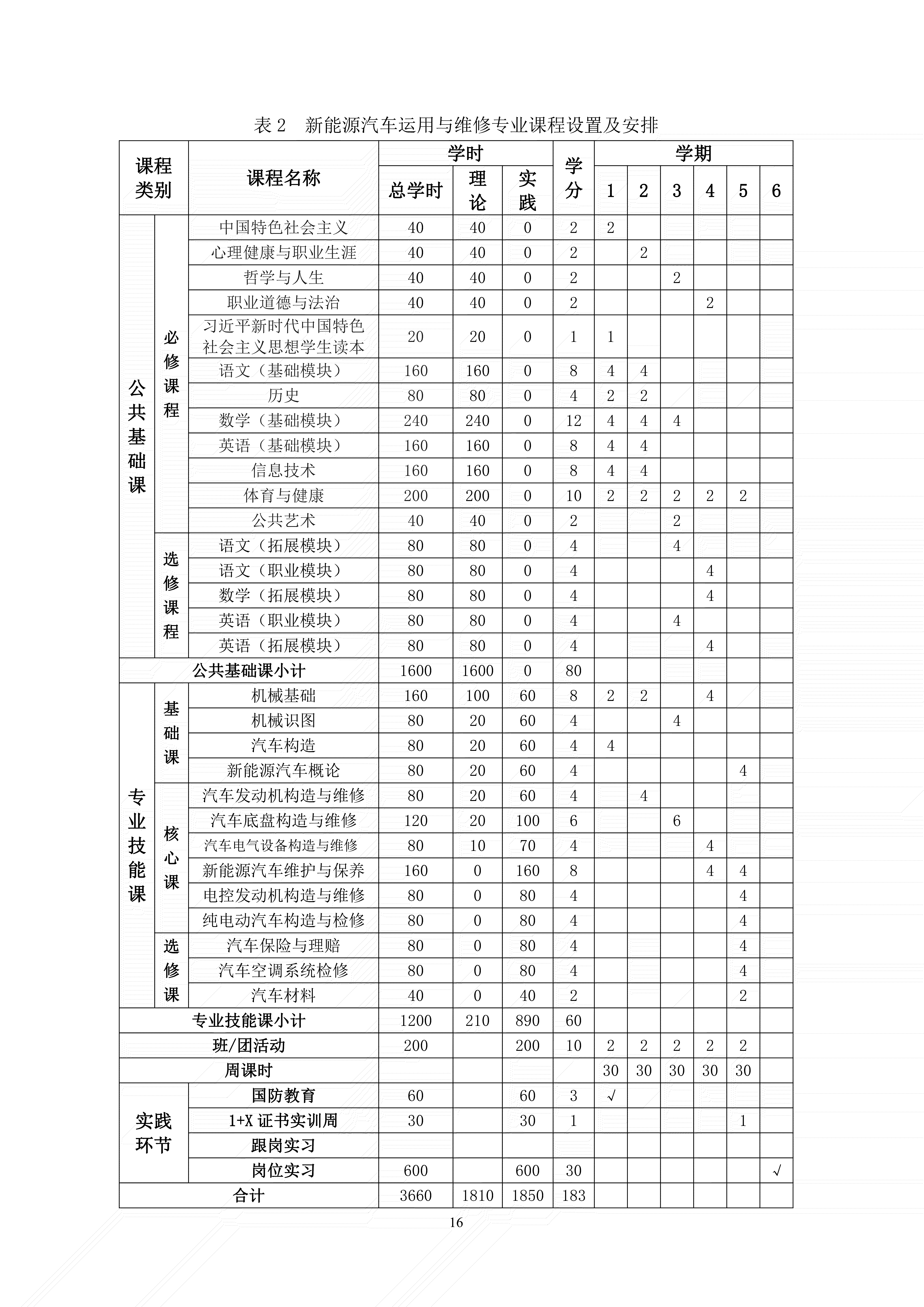三明市农业学校新能源汽车运用与维修专业人才培养方案(2024)