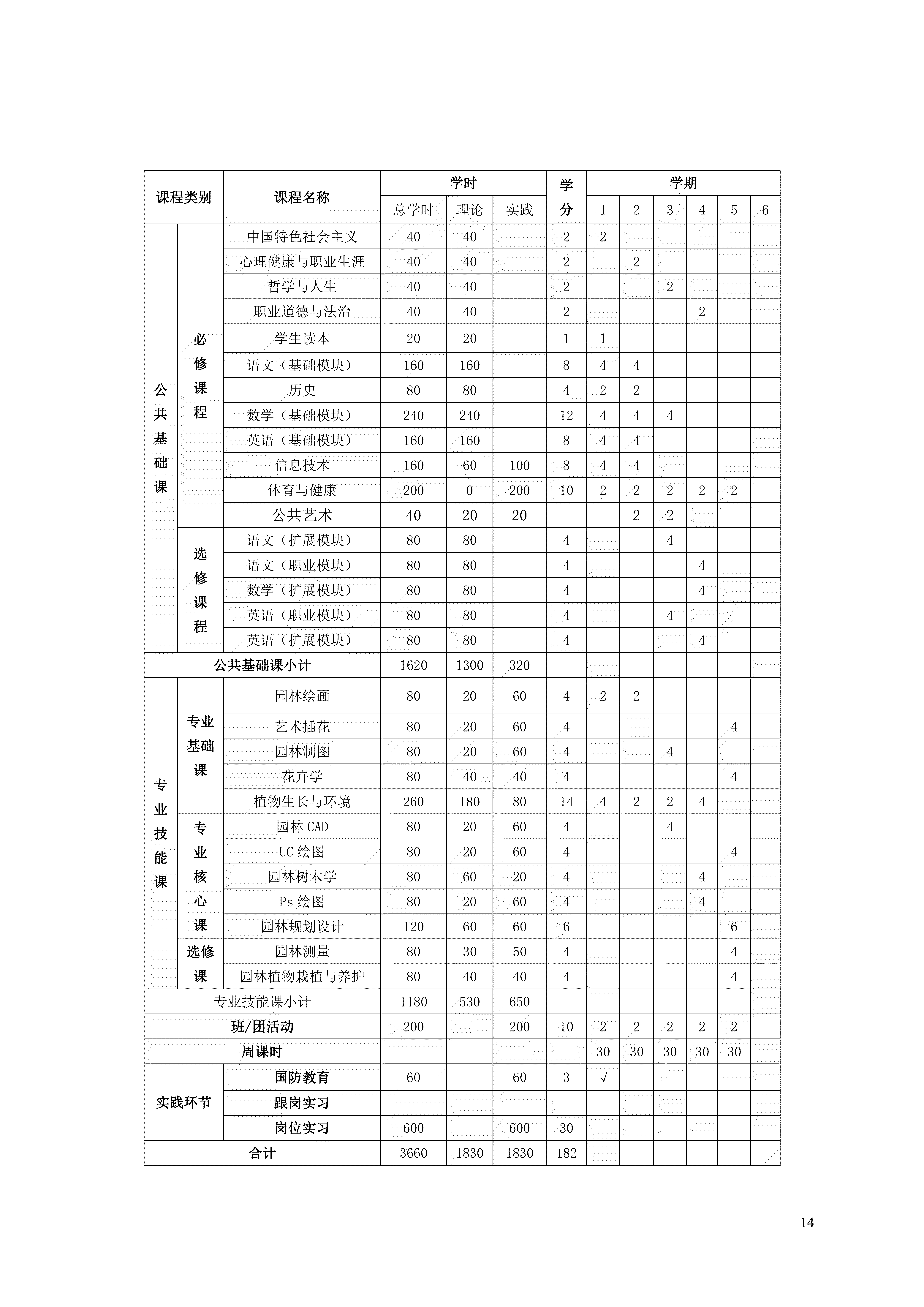 三明市农业学校园林绿化专业人才培养方案(2024)