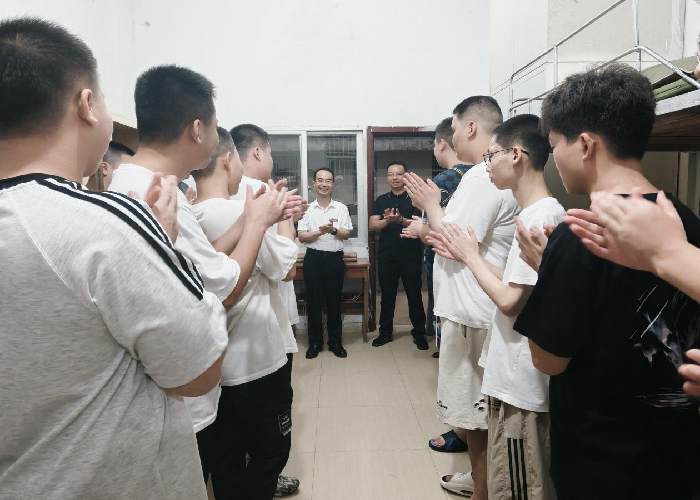 在走访过程中,校领导与新生亲切交流,细致询问其住宿感受与生活需求。校党委委员、校长陈文优向新生传递了学校的深切关怀。他希望同学们珍惜在校时光,科学规划学习与生活,明确奋斗目标,在教师指导下积极探索、勇于实践,持续提升综合素质,努力实现人生理想。他同时叮嘱新生,若遇困难需及时向老师和学校反映,学校将全力解决实际问题,保障大家安心学习、舒心生活。