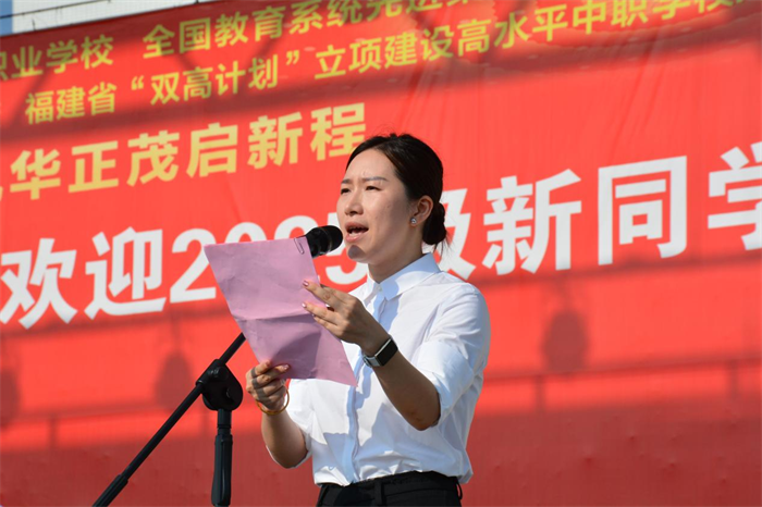 教师代表、2025级幼儿保育班班主任邹玉涛老师在发言中表示,全体班主任和授课教师将以高度的责任感和使命感,履行教书育人职责,用心传授知识技能,用情关怀学生成长,做学生求学路上的良师益友,助力新生们实现人生理想。