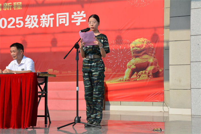 新生代表、2025级培优1班黄烁同学在发言中表示,全体新生将珍惜在校时光,秉承优良学风,刻苦学习专业知识,积极参与实践锻炼,努力成长为有理想、有本领、有担当的新时代青年,不辜负学校和师长的期望。
